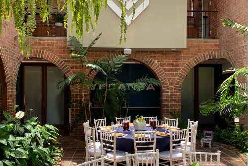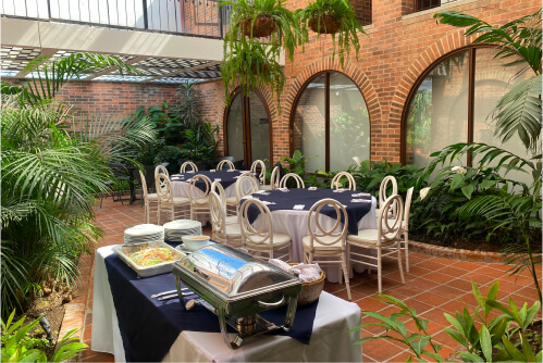 - Salón y sala de reuniones, espacios más privados que se adaptan a cualquier tipo de evento.